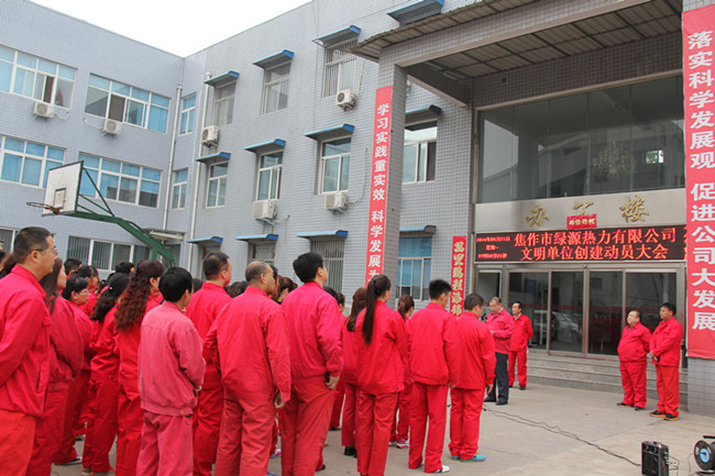 4月22日8時(shí),市綠源熱力公司召開(kāi)了文明單位創(chuàng)建動(dòng)員大會(huì),公司總經(jīng)理張智對(duì)創(chuàng)建文明單位工作進(jìn)行了動(dòng)員和部署,動(dòng)員全公司上下進(jìn)一步統(tǒng)一思想、提高認(rèn)識(shí)、整體推進(jìn),共同創(chuàng)建文明單位。公司領(lǐng)導(dǎo)班子、機(jī)關(guān)人員和一線職工參加了動(dòng)員大會(huì)。