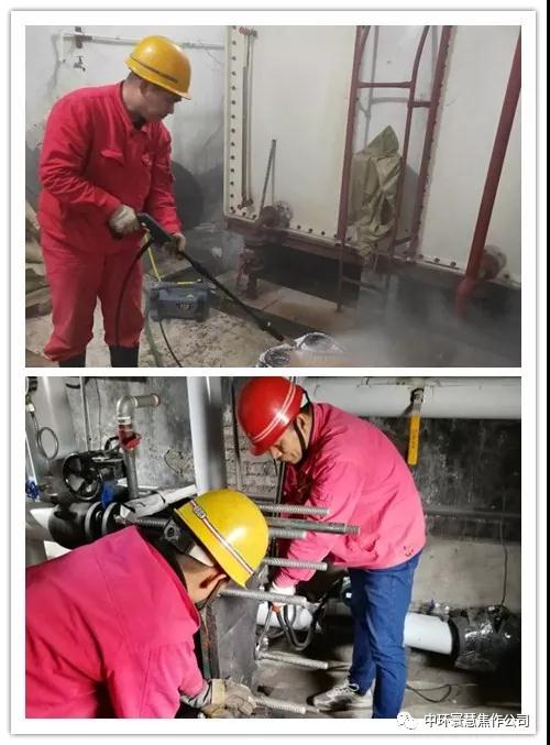 圖為中環(huán)寰慧焦作熱力公司檢修人員正在緊張檢修換熱站換熱器